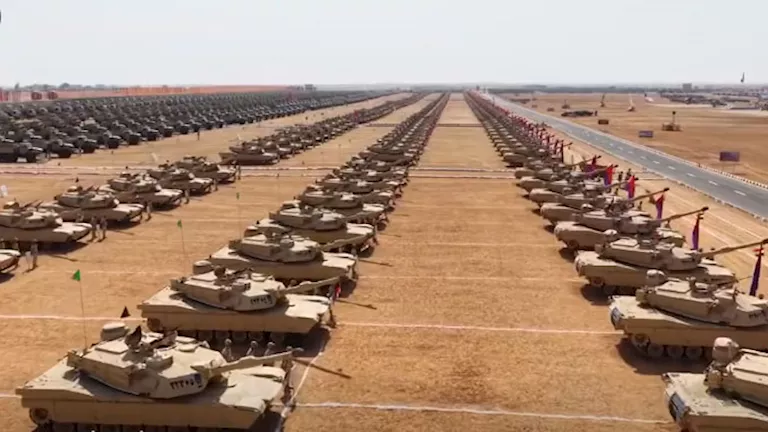 واستمع القائد العام للقوات المسلحة إلى التوجيه لأوضاع القوات المصطفة لمختلف الأسلحة والتخصصات داخل أرض الاصطفاف، كما شاهد مرور أسلحة ومعدات الأفرع الرئيسية ومختلف الهيئات والإدارات التخصصية بالقوات المسلحة المشاركة بالتفتيش، والتي أظهرت مدى ما وصلت إليه القوات المسلحة من طفرة في مجال تطوير التسليح وفقا لأحدث النظم العالمية والتي وضعتها ضمن أعلى تصنيفات الجيوش في العالم.
