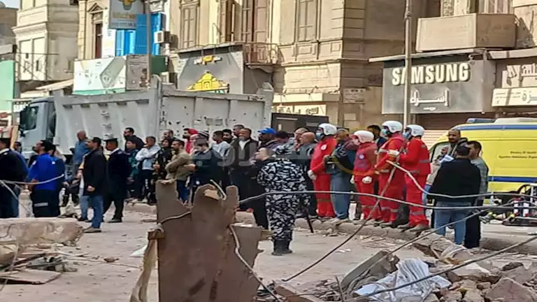 وفقاً للمعاينة الأولية، العقار المنهار يتكون من طابق أرضي و4 طوابق بالإضافة إلى السطح، وهو مبنى قديم يعود تاريخه إلى عام 1961، وانهيار العقار وقع فجر اليوم نتيجة تشققات في المبنى، مما أسفر عن محاصرة سكانه تحت الأنقاض.