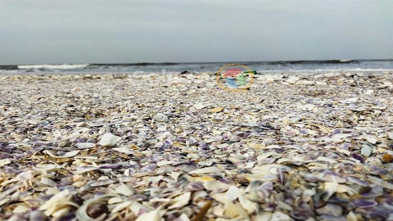 وتنشر الآلاف من أجسام المحار التي ألقت بها الأمواج بطول شواطئ بورسعيد التي تتجاوز 6 كيلومتر ولعل أبرزها: “القواقع وأم الخلول”، وتكون معظمها جسمها الصلب محطم ومكسور وخاوي من اللحم الذي كان بداخله.