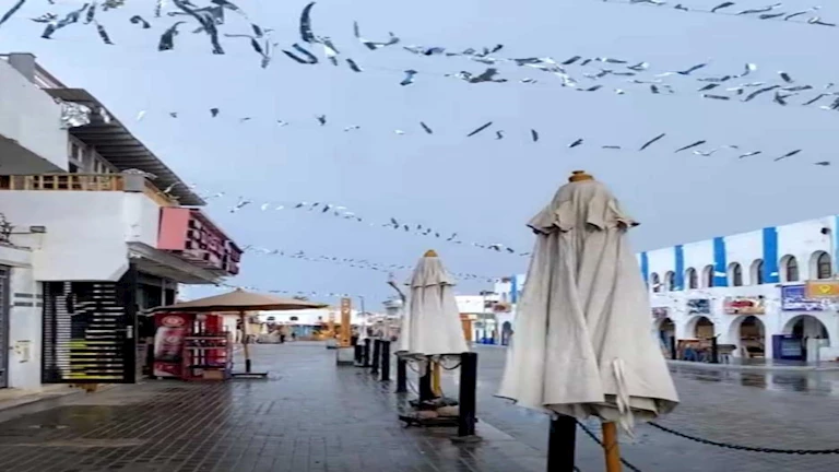 شهدت مدينة دهب بمحافظة جنوب سيناء، اليوم الجمعة، تقلبات جوية مفاجئة وغطت السحب سماء المدينة أعقبها تساقط أمطار غزيرة.