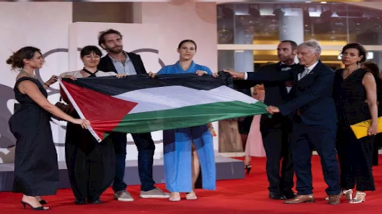 رفع فريق الفيلم الإيطالي ” My Tennis Maestro” وأبطاله، علم فلسطين خلال عرض فيلمهم ضمن فعاليات مهرجان فينيسيا السينمائي الدولي.