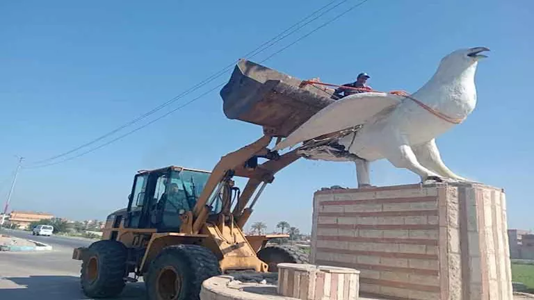 وكان المجسم، الذي جاء بتصميم غير مألوف وباللون الأبيض، قد انتشرت صوره مؤخرًا تحت اسم “ميدان الحمامة”، ما دفع الكثير من المواطنين ورواد السوشيال ميديا إلى انتقاده واعتباره لا يعبّر عن الطابع التراثي للمنطقة، حيث وصفه البعض بـ”الحمامة الفضائية”.