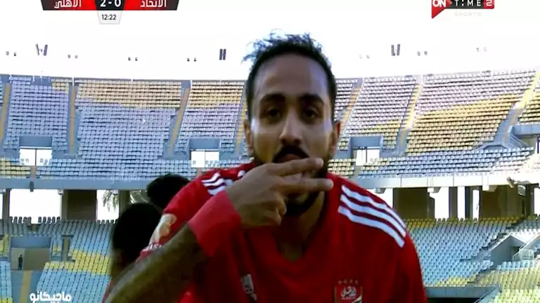 في مباراة الأهلي والاتحاد التي أقيمت على ملعب برج العرب، يوليو 2023، سجل محمود كهربا هدفا للأهلي، واحتفل بشكل مثير.