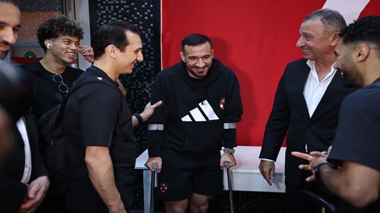 وظهر التونسي علي معلول لاعب النادي الأهلي “بالعكاز”، بعدما تعرض للإصابة في الدقائق الأولى من لقاء أمس.