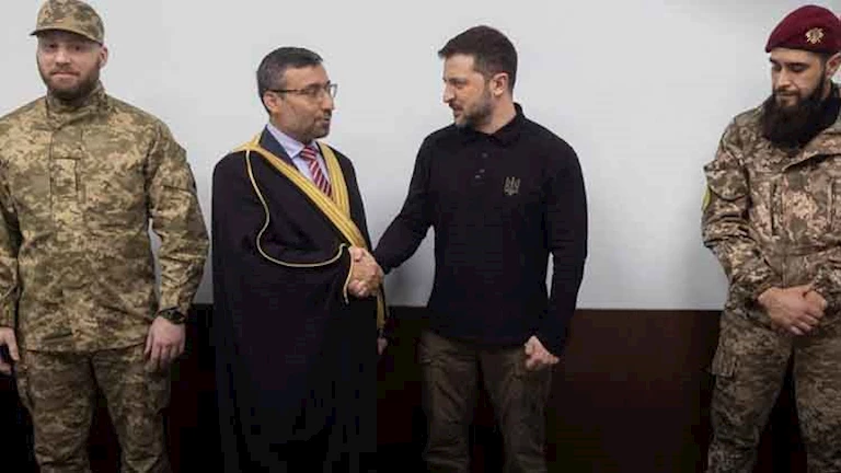 شارك الرئيس الأوكراني فولوديمير زيلينسكي في مأدبة إفطار رمضانية مع جنود مسلمين في الجيش الأوكراني وممثلين عن الجالية المسلمة.