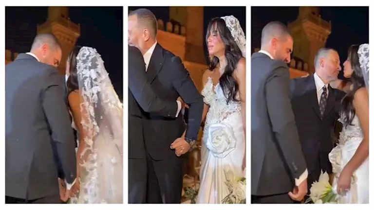 بالصور.. بكاء ابنة ماجد المصري في حفل زفافها