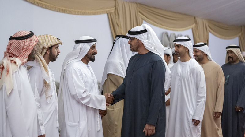 قدم صاحب السموّ الشيخ محمد بن زايد آل نهيان رئيس الدولة، حفظه الله، واجب العزاء في وفاة خلفان مطر الرميثي، وذلك خلال زيارة سموّه إلى مجلس العزاء في مدينة العين.