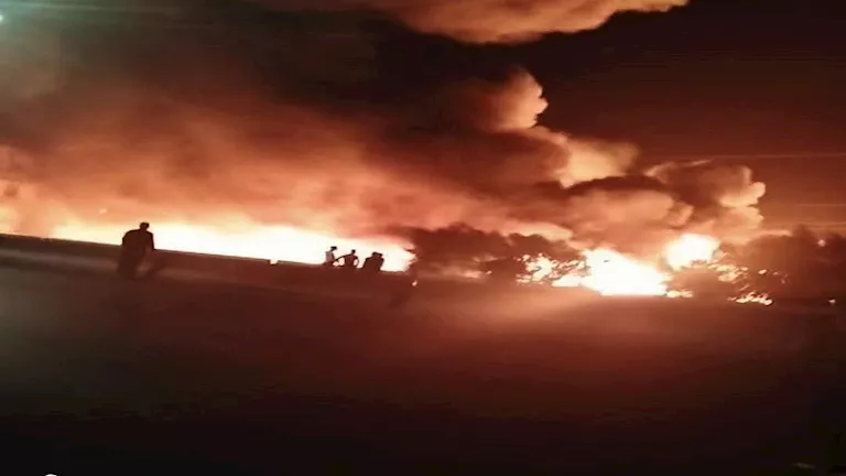 النار ارتفاع مترين.. 9 سيارات إطفاء للسيطرة على حريق مخزن أخشاب في ال