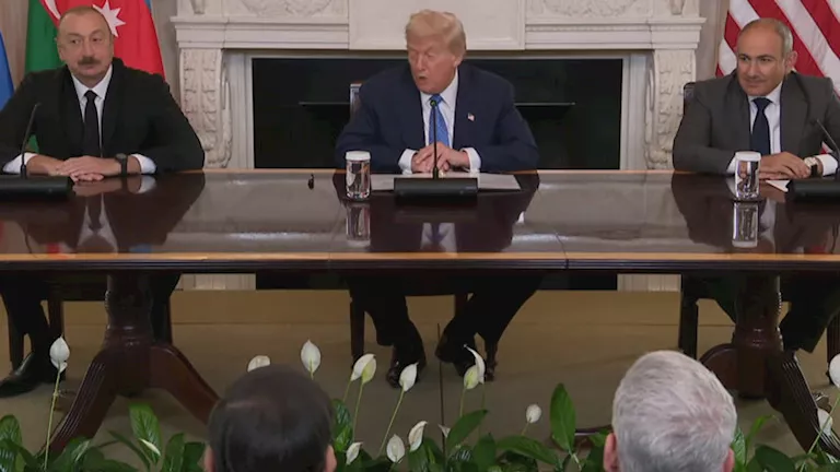 استقبل الرئيس الأمريكي دونالد ترامب، الجمعة، زعيمي أرمينيا وأذربيجان في البيت الأبيض، حيث أشرف على توقيع إطار سلام يهدف إلى تطبيع العلاقات بين الدولتين المجاورتين في جنوب القوقاز بعد نزاع دموي استمر أربعة عقود.