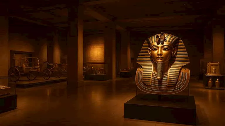 وتابع: خُصصت القاعتان لتأخذ الزائر في رحلة بصرية وسردية تحاكي حياة الملك الشاب من طفولته على العرش إلى موكب جنازته ورحلته الأبدية نحو الخلود، عبر تصميم علمي دقيق وإضاءة ذكية وتقنيات عرض تُجسّد روح المقبرة الأصلية.