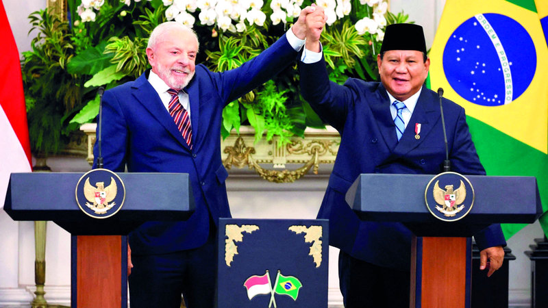 تصدّر الرئيس البرازيلي، لويس إيناسيو لولا دا سيلفا، عناوين الصحف في جاكرتا، خلال لقائه الرئيس الإندونيسي برابوو سوبيانتو، أخيراً، في زيارة رسمية شملت ملفات الاقتصاد والصناعة والجغرافيا السياسية.