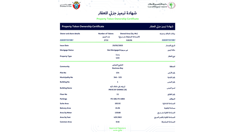 «أراضي دبي» تُصدر أول ملكية جزئية مرمّزة في العالم