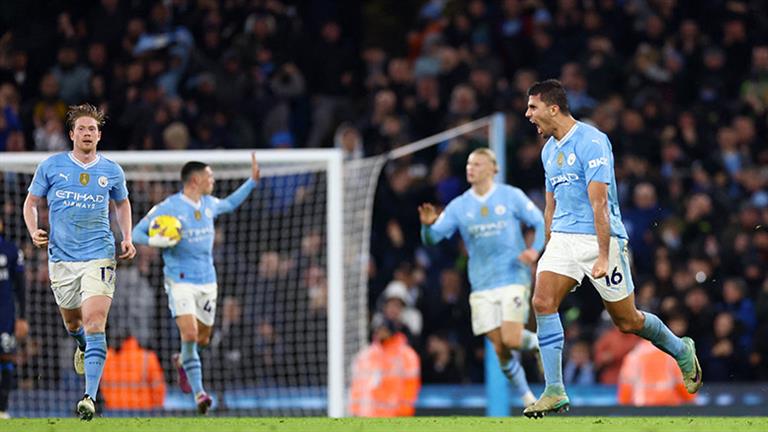 سجل هدف تعادل مانشستر سيتي، رودري في الدقيقة 83.