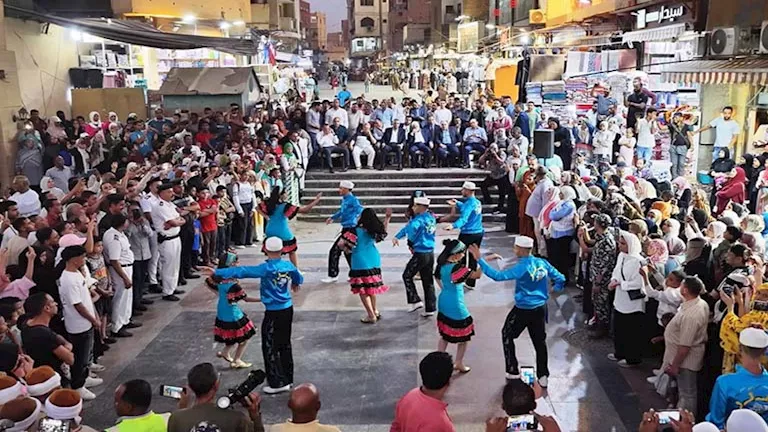 شارك فى فعاليات المهرجان 8 فرق للفنون الشعبية هى: أسوان والأقصر وملوى وسوهاج وكفر الشيخ وبورسعيد والعريش والأنفوشى، وتم تقديم عروض فنية متنوعة ورقصات تراثية تعبر عن الهوية الثقافية لكل محافظة مما لاقى تفاعلا من الأهالى والأفواج السياحية والزوار المصريين والأجانب الذين احتشدوا لمتابعة الفعاليات فى السوق السياحى.