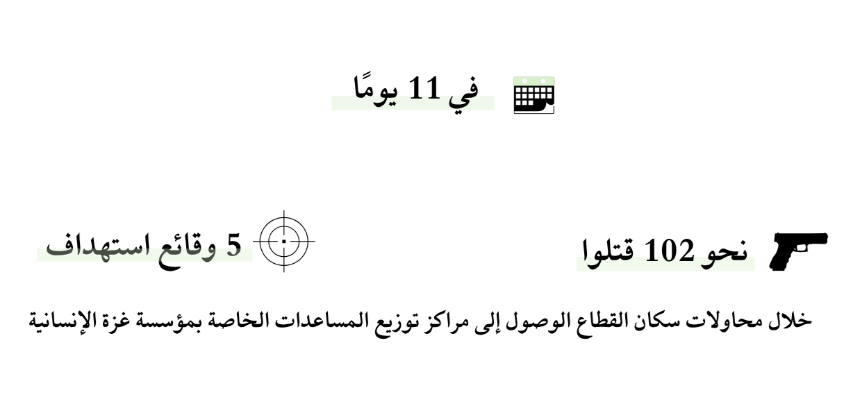 تكرر الأمر يومي 9 و11 يونيو، بعد أن فتحت ثلاث مراكز توزيع: الأول بوادي غزة، والثاني بالقرية السويدية في منطقة تل السلطان والثالث بالحي السعودي في رفح. فبينما تعلن توزيعها ما يعادل 1.6 مليون وجبة غذائية يوم 9 يونيو، قتل عشرة أشخاص وأصيب أكثر من 30 خلال محاولتهم الوصول إلى مركزي توزيع المساعدات، كما ذكر الدفاع المدني في قطاع غزة، أضيف لهم 31 آخرين، أمس الأربعاء، بوسط القطاع.
