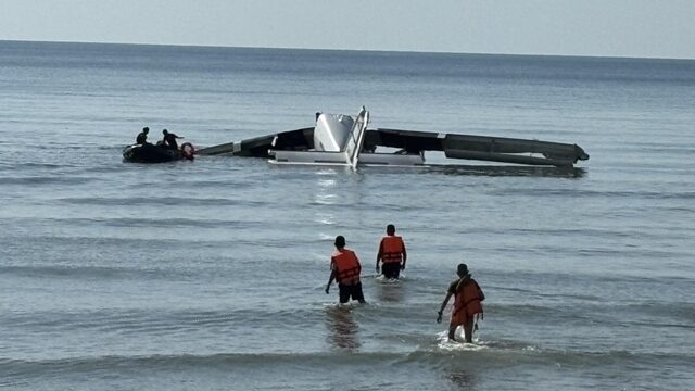 وتُظهر الصور أن الطائرة سقطت في البحر على بعد حوالي 100 متر من الشاطئ. وبدا جسم الطائرة مشطورا إلى نصفين.