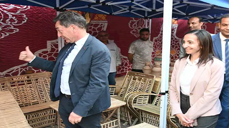 وأبدى السفير وزوجته ماتيلد شوفالييه إعجابهما بما شاهده من معروضات تضمنت صناعة السجاد اليدوي والجريد ومنتجات الخوص، مشيدًا بمهارة الأنامل الذهبية لأبناء رشيد في الحفاظ على الهوية التراثية وإحياء الصناعات التقليدية.