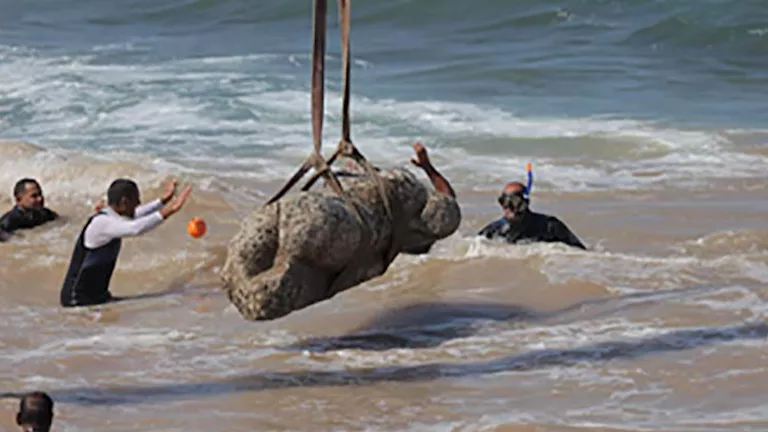للمرة الأولى منذ 25 عاماً.. انتشال ثلاث قطع أثرية ضخمة من مياه أبو قير