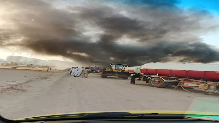 رجال الإطفاء خاضوا معركة حقيقية مع النيران، مستخدمين خراطيم المياه والرغوة في محاولة لاحتواء الحريق ومنع امتداده للمباني المجاورة، خاصة وأن الموقع يقع بالقرب من منشآت حيوية وسكنية. وبعد جهود مكثفة استمرت قرابة الساعة، تمكنت القوات من السيطرة على الحريق بالكامل ومنع تفاقم الخسائر.