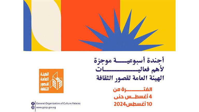 تقدم الهيئة العامة لقصور الثقافة، بإشراف الكاتب محمد عبد الحافظ ناصف، نائب رئيس الهيئة، أجندة حافلة بالفعاليات الثقافية والفنية بدءا من الأحد وحتى السبت المقبل 10 أغسطس.