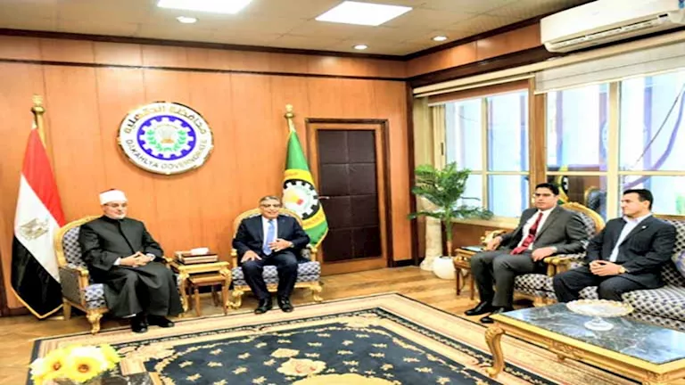 ورحب المحافظ بفضيلة المفتي، مؤكدًا اعتزاز المحافظة بمؤسساتها العلمية والدينية والوطنية، وأن اجتماع العلم بالقيم يرسّخ مسار الدولة نحو بناء الإنسان والارتقاء بوعيه. وأضاف أن الدقهلية تفتخر بعلمائها وبجامعة المنصورة الرائدة، وتسعى لتوفير كافة سبل الدعم لبيئة بحثية تنتج معرفة نافعة وحلولًا عملية تخدم المواطن الدقهلاوي في مختلف القطاعات الخدمية.
