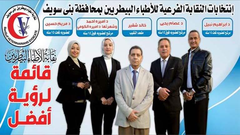 تشهد محافظة بني سويف منافسة شرسة في انتخابات نقابة الأطباء البيطريين، بعد تقدم 10 أطباء لخوض الانتخابات على 5 مقاعد، في الانتخابات التي ستجرى 6 مارس المقبل.