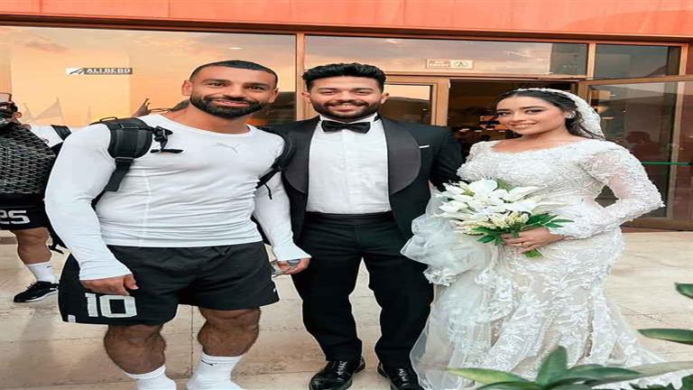 وقام محمد صلاح بالتقاط صورة تذكارية مع العروسين، خلال عودته إلى فندق إقامة منتخب مصر، عقب الانتهاء من المران الجماعي.