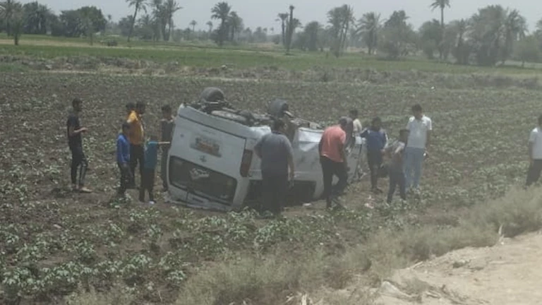 بالصور- 7 مصابين في انقلاب ميكروباص ببني سويف