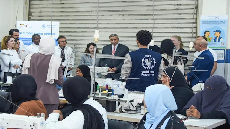 وأتى ذلك بحضور الفريق أحمد خالد، محافظ الإسكندرية، والسفيرة أليسا جولبرج، رئيسة المجلس التنفيذي لبرنامج الأغذية العالمي والممثلة الدائمة لكندا لدى وكالات الأمم المتحدة في روما، ومحمد هنو، رئيس مجلس إدارة جمعية رجال أعمال الإسكندرية، لتفقد برنامج تدريب اللاجئين والمجتمعات المضيفة الذي ينفذه برنامج الأغذية العالمي (WFP) بالتعاون مع جمعية رجال أعمال الإسكندرية.