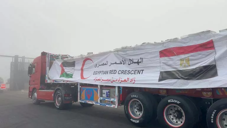 7300 طن مساعدات لغزة.. الهلال الأحمر المصري يُطلق قافلة “زاد العزة -69