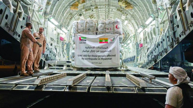 بتوجيهات صاحب السمو الشيخ محمد بن زايد آل نهيان، رئيس الدولة، حفظه الله، وصاحب السمو الشيخ محمد بن راشد آل مكتوم، نائب رئيس الدولة رئيس مجلس الوزراء حاكم دبي، رعاه الله، أرسلت دولة الإمارات مساعدات إنسانية وطبية عاجلة إلى جمهورية ميانمار، في إطار استجابتها السريعة لتداعيات الزلزال الذي ضرب البلاد أخيراً.
