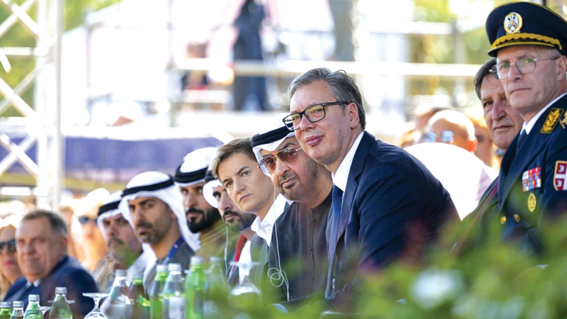 شهد صاحب السمو الشيخ محمد بن زايد آل نهيان، رئيس الدولة، حفظه الله، ورئيس جمهورية صربيا، ألكسندر فوتشيتش، أمس، عرضاً عسكرياً، أقيم ضمن الاحتفالات بمناسبة يوم «الوحدة والحرية والعلم الصربي»، وذلك في إطار زيارة عمل يقوم بها سموه إلى صربيا.