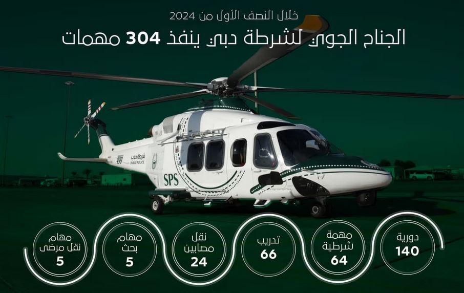 الجناح الجوي لشرطة دبي يُنفذ 304 مهمات خلال النصف الأول من العام
