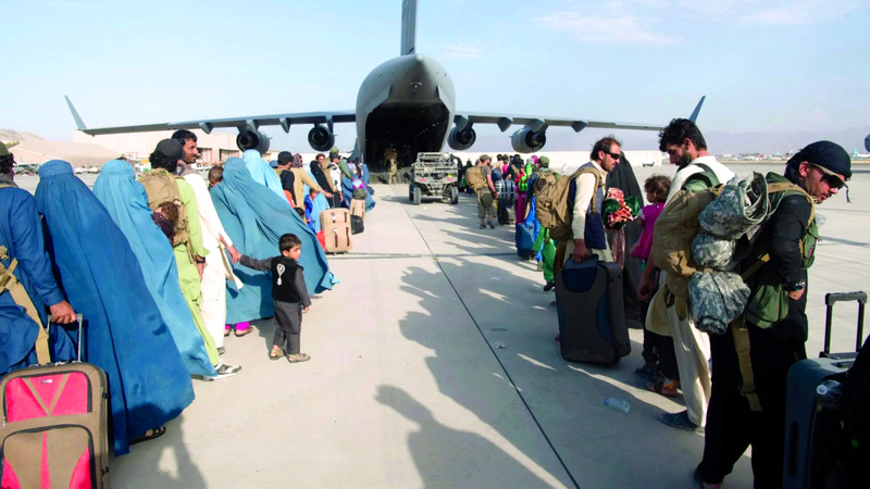 بعد سقوط كابول في أيدي «طالبان»، في 15 أغسطس 2021، أدت عمليات الإجلاء المتسرعة، بما في ذلك على متن طائرات عسكرية، إلى وصول عشرات الآلاف من الأفغان إلى القواعد الأميركية، وغادرت آخر رحلة عسكرية أميركية أفغانستان في 30 أغسطس 2021.
