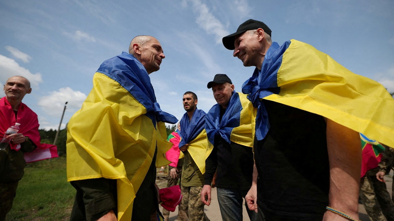 أسرى حرب أوكرانيون أفرجت روسيا عنهم، ضمن مرحلة جديدة من عملية تبادل الأسرى بين موسكو وكييف، حيث جاء هذا التبادل الجديد بعد ساعات من غارات شنتها روسيا وأسفرت عن قتلى في أوكرانيا.