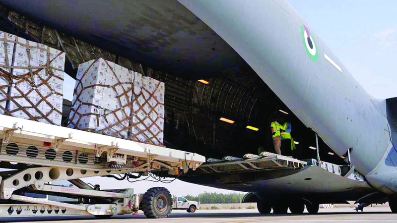 عزّزت قيادة العمليات المشتركة جهودها الإغاثية في أفغانستان، فقد أقلعت، أمس، ثلاث طائرات محملة بأكثر من 105 أطنان من المواد الغذائية لدعم ومساندة المتضررين جراء الزلزال الذي ضرب المناطق الشرقية من أفغانستان.
