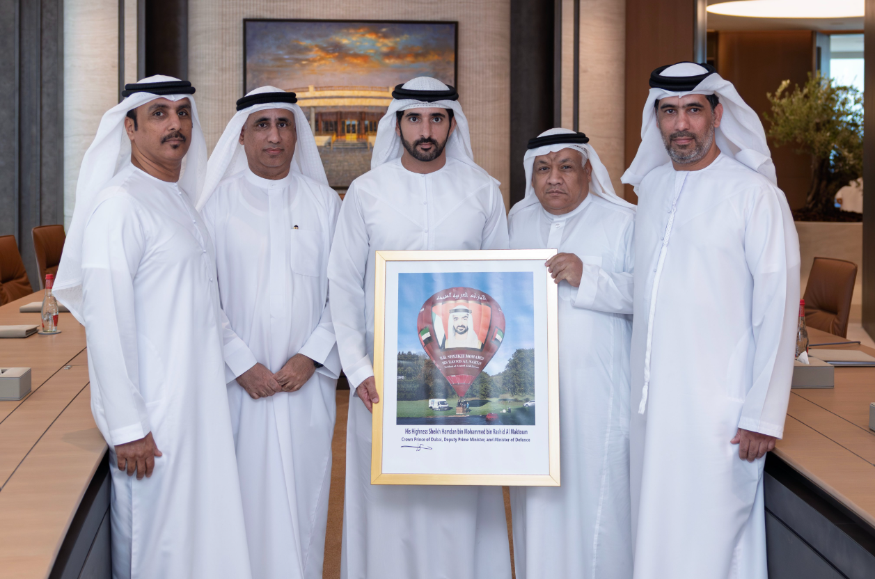 حمدان بن محمد يستقبل أعضاء طاقم وفريق منطاد رئيس الدولة