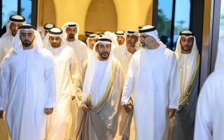 حضر سموّ الشيخ خالد بن محمد بن زايد آل نهيان، ولي عهد أبوظبي، والفريق سمو الشيخ سيف بن زايد آل نهيان، نائب رئيس مجلس الوزراء وزير الداخلية، حفل استقبال أقامه سعادة فرج علي غانم بن حمودة، بمناسبة زفاف نجله “محمد” على كريمة خالد عتيج بن ثايب القبيسي.