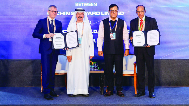 وأفاد بيان صادر أمس، بأن الرئيس التنفيذي لشركة الأحواض الجافة العالمية، القبطان الدكتور رادو أنتولوفيتش، ورئيس مجلس الإدارة العضو المنتدب لشركة كوتشين لبناء السفن المحدودة، مادهو إس. نير، وقعا الاتفاقية، بحضور وزير الموانئ والشحن والممرات المائية في الحكومة الهندية، شري سارباناندا سونوال، ورئيس مجلس الإدارة الرئيس التنفيذي لمجموعة موانئ دبي العالمية (دي بي ورلد)، سلطان أحمد بن سليم، وذلك خلال «أسبوع الملاحة البحرية في الهند 2025» المنعقد في مدينة مومباي.