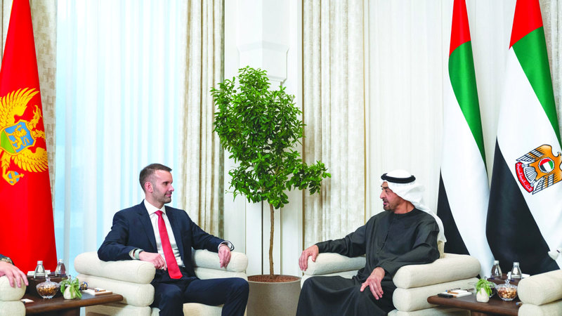 جاء ذلك خلال لقاء سموّه، في قصر الشاطئ بأبوظبي، رئيس وزراء مونتينغرو، الذي يقوم بزيارة عمل إلى الدولة.