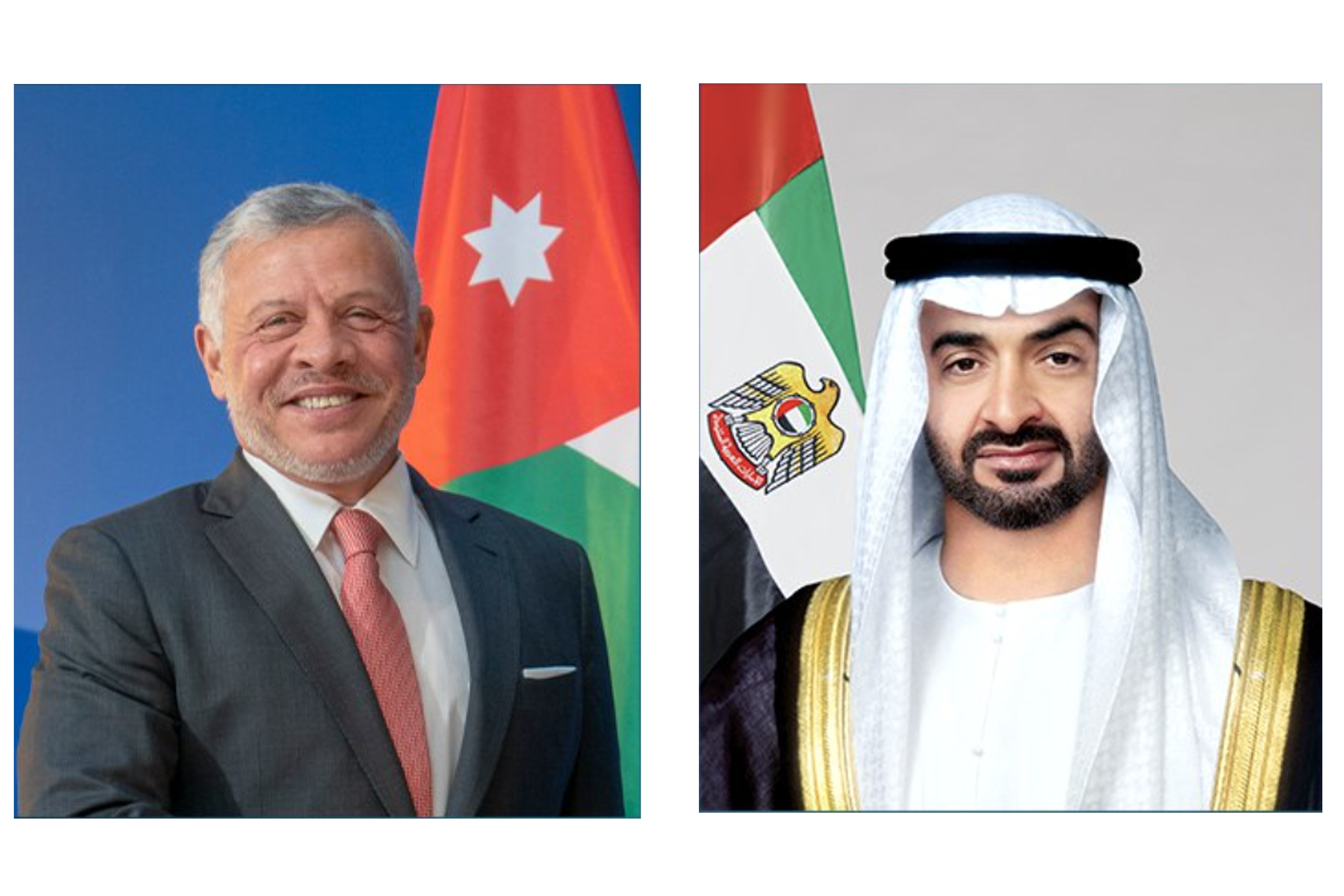 وأشاد جلالة الملك عبد الله الثاني بأهمية الجهود التي تبذلها دولة الإمارات العربية المتحدة بقيادة صاحب السمو الشيخ محمد بن زايد آل نهيان في دعم استقرار المنطقة ومنع توسع الصراع فيها.