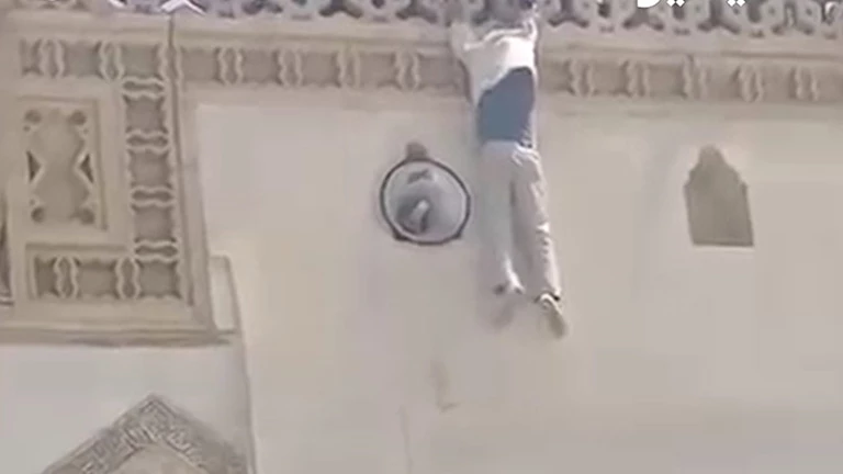 شاب يحاول القفز من فوق الجامع الأزهر ومسئولو المسجد ينقذونه