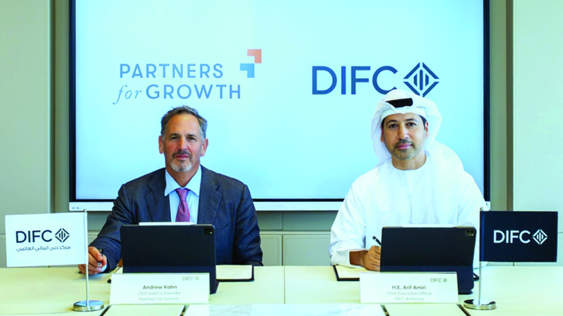 أعلن مركز دبي المالي العالمي، وشركة «بارتنرز فور جروث» (بي إف جي)، المتخصصة في تقديم الحلول الائتمانية مقابل الأصول للشركات التقنية سريعة النمو، إبرام شراكة استراتيجية لضخ تمويلات نمو هيكلية، بهدف تمويل ودعم توسع الجيل الجديد من شركات التكنولوجيا سريعة النمو في دبي ودول مجلس التعاون الخليجي.