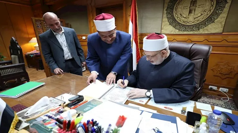 اعتمد الدكتور محمد الضويني، وكيل الأزهر، اليوم الأربعاء، نتيجة امتحان الدور الأول للشهادتين الابتدائية والإعدادية لـ “أبناؤنا في الخارج” للعام الدراسي 2025م، ونتيجة البرنامج التأهيلي للطلاب الملحقين على الشهادة الإعدادية، بحضور الشيخ أيمن عبد الغني، رئيس قطاع المعاهد الأزهرية، والشيخ حميد أبو عريضة، وكيل قطاع المعاهد الأزهرية لشؤون الامتحانات.