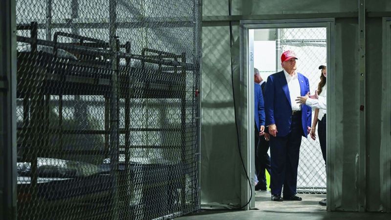 وزار ترامب، الذي تعهد بترحيل ملايين المهاجرين غير المسجلين، المركز، الشهر الماضي، وتباهى بظروفه القاسية ومازح قائلاً، إن «تلك التماسيح المفترسة ستتولى حراسته».