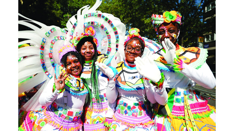 فتيات يشاركن في مسيرة يوم الطفل بكرنفال «نوتينغ هيل» في لندن، ويُعدّ كرنفال «نوتينغ هيل»، الأكبر من نوعه في شوارع أوروبا، وهو احتفال مجتمعي بالتاريخ والثقافة الكاريبية وما يتميّز به سكان المنطقة الكاريبية، ويقام هذا العام يومَي 25 و26 أغسطس، ويُعدّ يوم الأحد الماضي تقليدياً يوم كرنفال الأطفال. إي.بي.إيه