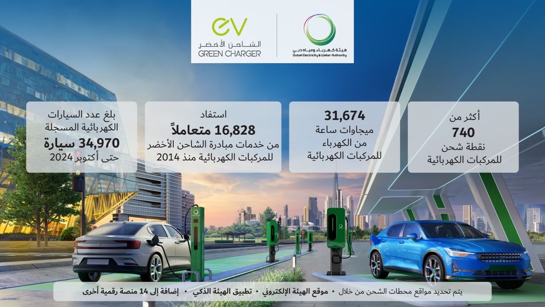 أعلنت هيئة كهرباء ومياه دبي، اليوم، أنها وفرت شبكة واسعة من محطات الشاحن الأخضر للمركبات الكهربائية تضم نحو 740 نقطة شحن في مختلف أنحاء دبي، ما يدعم النمو المطرد الذي تشهده الإمارة في تبني المركبات الكهربائية التي وصل عددها أكثر من 34 ألفا و970 مركبة في أكتوبر 2024.