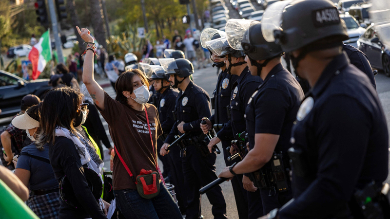 وقد أثارت موجة من عمليات توقيف المهاجرين غير النظاميين على أيدي الشرطة الفيدرالية المعنية بشؤون الهجرة «آيس»، احتجاجات كانت أحياناً عنيفة في لوس أنجلوس، معقل الديمقراطيين.
