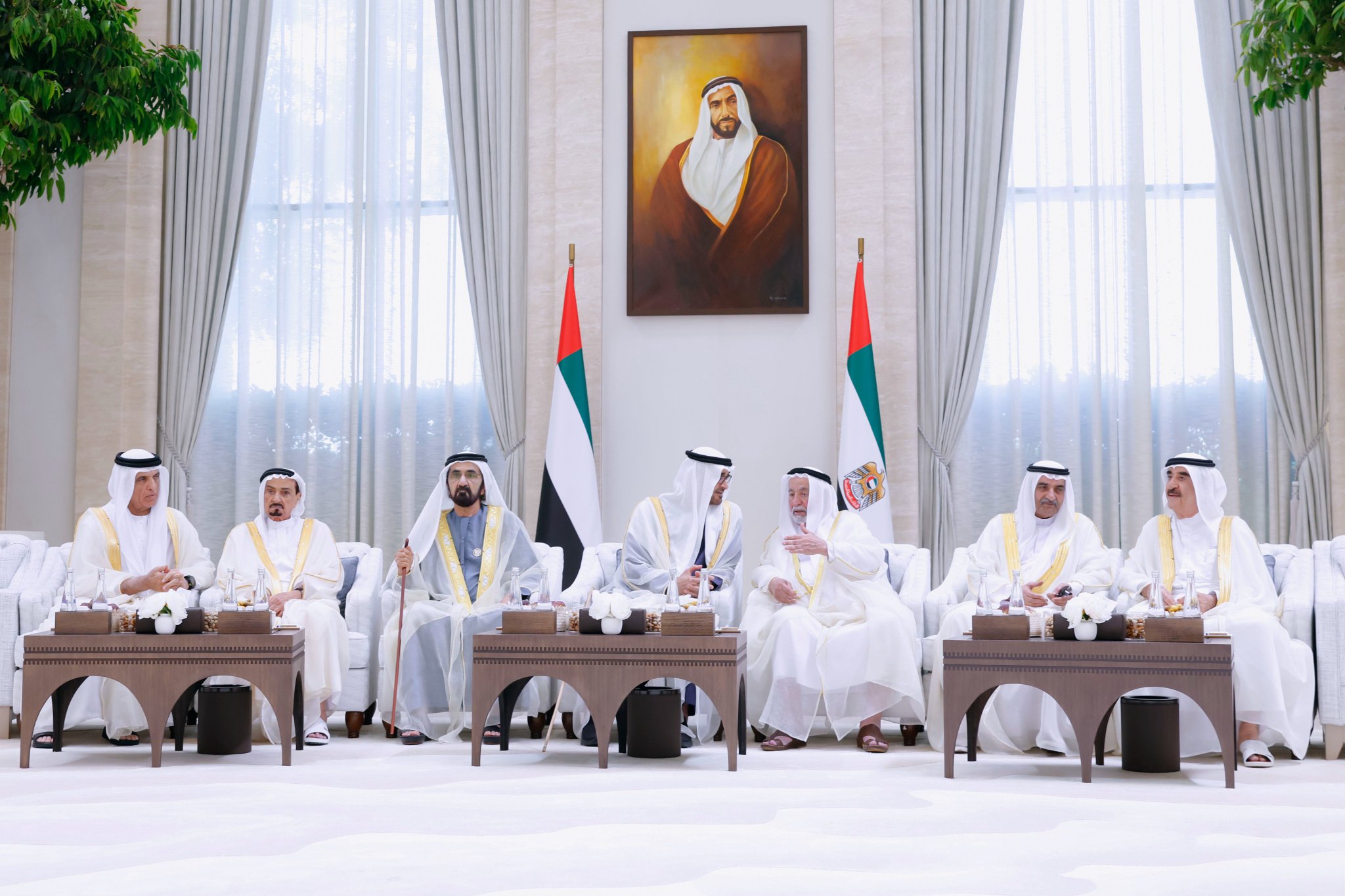 أعرب صاحب السمو الشيخ محمد بن زايد آل نهيان، رئيس دولة الإمارات، حفظه الله، عن سعادته بلقاء إخوانه أصحاب السمو حكام الإمارات، حيث تبادلوا التهاني والتمنيات الطيبة بمناسبة عيد الأضحى المبارك.