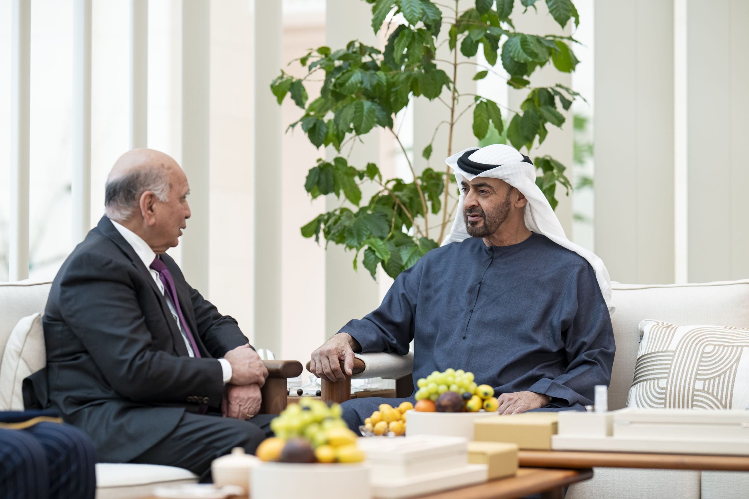 استقبل صاحب السمو الشيخ محمد بن زايد آل نهيان رئيس الدولة “حفظه الله” اليوم، فؤاد محمد حسين نائب رئيس مجلس الوزراء وزير خارجية جمهورية العراق، الذي سلم سموه دعوة رسمية من الدكتور عبد اللطيف جمال رشيد رئيس جمهورية العراق لحضور القمة العربية في بغداد المقررة في 17 مايو المقبل.